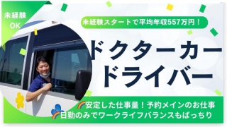 | 仕事内容 | タクシードライバーとしての経験を積み、命をつなぐお仕事、してみませんか? 【ドクターカードライバーの具体的な仕事内容】 ・訪問診療時の医師、看護師の送迎 ・緊急要請時、救急現場への医師、看護師の送迎 ・病院から病院への患者様の搬送 ・病院からの患者様の一時外出の送迎 このほか、車両整備や装備品のチェック等、出動に向けた準備作業や看護師さんの雑務のお手伝いを行います。 シフトや、担当する病院により、タクシー業務もお任せすることがあります。 ※提携している病院に待機・タクシー業務中に緊急連絡を受けて駆けつけ など、担当する病院により業務内容が異なる場合があります。 ※基本的にはホットライン(緊急連絡)があるまでは院内勤務です。 【入社後は…】 ドクターカードライバーの仕事は、多くの皆様の命に関わる重要なお仕事のため、より洗練された運転技術が必要になります。 まずはタクシードライバーとしてしっかりと運転技術を磨き、ステップアップを目指しましょう! 社内基準をしっかりと満たすことができたら、救急車車両講習などの専門研修ののち、ドクターカードライバーデビューとなります。 |