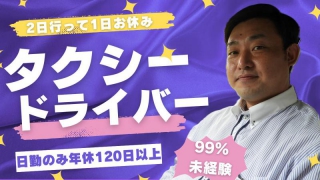 | 休日・休暇 | 2日連続で勤務した後に1日お休みとなります。 (月10日休み) 〇年間休日は最大120日以上 〇休日出勤や持ち帰りの仕事はなし! <特別休暇> ◎アニバーサリー休暇 ◎里帰り休暇 ◎生理休暇 他にも特別休暇制度あり! 取得を積極的に推奨しています! ★日本初! 月6~8日休みが基本だったタクシー業界で、日本で初めて、昼勤務・昼夜勤務で10日休みを実現することができた会社です! 1人当たりの生産性向上により、勤務日数を減らした働き方もできるようになり、社員の定着率も抜群! |